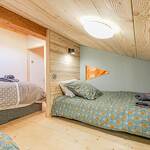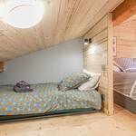 - une 2ème chambre en mezzanine avec lit double en 140*200 et un coin cabane attenant avec 2 lits simples de 90*190 (idéal pour les enfants)