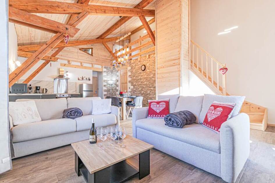 Au cœur du village de Termignon Val-Cenis, porte du Parc national de la Vanoise, appartement duplex 4-6 personnes de 70 m2 chaleureux et cosy, tout neuf (aménagé en 2025) et situé au 1er étage d'une maison individuelle dans une rue calme.