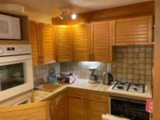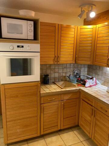 - un séjour avec coin cuisine équipé (micro-ondes, réfrigérateur, lave-vaisselle, four, 4 feux gaz) et coin salon TV écran plat