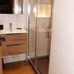 Salle de Bain : Douche à l'italienne, lavabo + meuble.